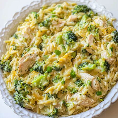The Creamy Chicken and Broccoli Orzo Casserole Delight is a comforting dish that embodies the perfect balance of flavors and textures. This casserole melds tender chicken, vibrant broccoli, and creamy orzo pasta into one hearty meal. Ideal for weeknight dinners or family gatherings, it offers a wholesome, satisfying experience that appeals to both children and adults. The creamy sauce enveloping the orzo and chicken creates a rich, savory flavor that is hard to resist. With its ease of preparation, this dish shines as a go-to recipe for busy cooks who want to serve something nutritious without sacrificing taste. From warming up chilly evenings to satisfying hunger after a long day, the Creamy Chicken and Broccoli Orzo Casserole Delight is sure to become a beloved staple in your home.