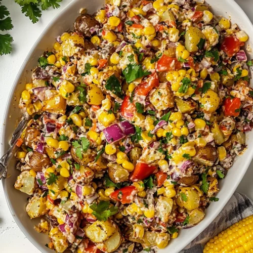 - For a Mediterranean twist, add diced cucumbers, cherry tomatoes, and feta cheese to the salad. The freshness of these ingredients complements the roasted potatoes and corn beautifully.