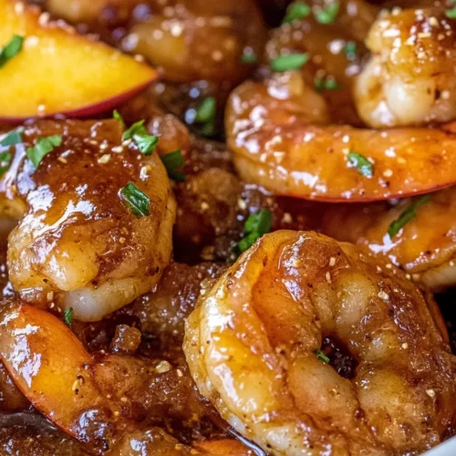 Savory Bourbon Peach Roasted Shrimp is a vibrant dish that combines the rich sweetness of peaches with succulent shrimp, creating an unforgettable flavor experience. This recipe is perfect for weeknight meals or family gatherings, as it’s simple to prepare yet impressive enough to serve to guests. The combination of savory and sweet in the Savory Bourbon Peach Roasted Shrimp elevates any dining occasion, making it a versatile choice for summer barbecues or cozy dinners. The standout quality of this dish lies in the balance of flavors; the natural sweetness of the peaches complements the savory notes of the shrimp, resulting in a dish that is both refreshing and satisfying.