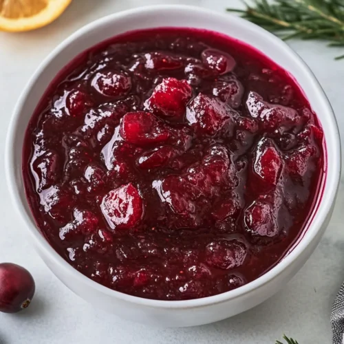 Simple Homemade Cranberry Sauce is a quintessential dish that brings a burst of tart flavor to any meal. This vibrant sauce pairs perfectly with many traditional dishes, making it a beloved staple during festive gatherings, family dinners, and even weeknight meals. The bright red hue and the tangy taste of fresh cranberries create a beautiful contrast to savory dishes, enhancing their flavors. This sauce is not only easy to make but also a great way to incorporate seasonal ingredients into your meals. It appeals to a wide audience, including families looking for a healthy side dish and food enthusiasts eager to explore bold flavors. What truly sets Simple Homemade Cranberry Sauce apart is its versatility; it can be enjoyed warm or chilled, making it suitable for various occasions, from holiday feasts to summer barbecues.